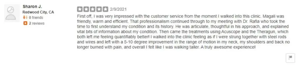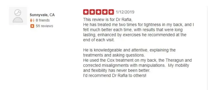 We value our patients' experience at Los Gatos Chiro & Rehab. If you are currently a patient, please feel free to submit your review to one of our social media pages or email us on our contact page.